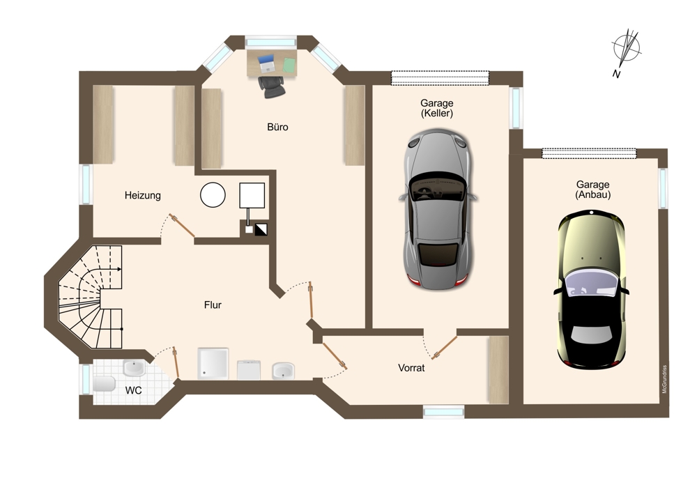 + Zwei Garagen, eine davon mit direktem Zugang zum Haus