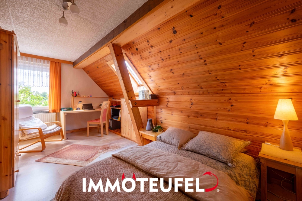 Im Obergeschoss überzeugt eine klassische, familiengerechte Aufteilung: drei gut geschnittene Zimmer, die flexibel als Elternschlafzimmer, Kinderzimmer, Gäste- oder Homeoffice-Räume genutzt werden können. Das Badezimmer mit Wanne rundet den Komfort auf dieser Etage ab. Zusätzlich ist das Haus teilunterkellert – hier gibt es Platz für Vorräte oder Hobby, während der Spitzboden bislang als praktischer Lagerraum genutzt wurde.