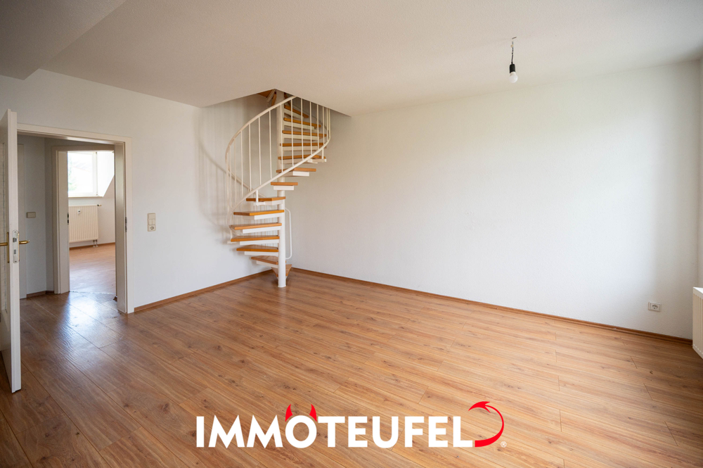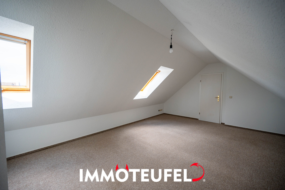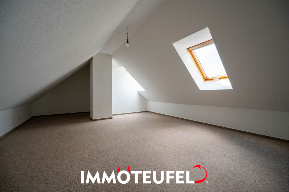 Der Mittelpunkt der Wohnung ist das helle und großzügige Wohnzimmer, welches vielfältige Einrichtungsmöglichkeiten zulässt. Über eine Treppe gelangt man in den Spitzboden, der durch sein offenes Raumkonzept besonders flexibel nutzbar ist – sei es als Homeoffice, Gästezimmer oder kreativer Rückzugsort. Zusätzlichen Stauraum bietet ein Abstellraum auf halber Treppe sowie ein eigenes Kellerabteil.