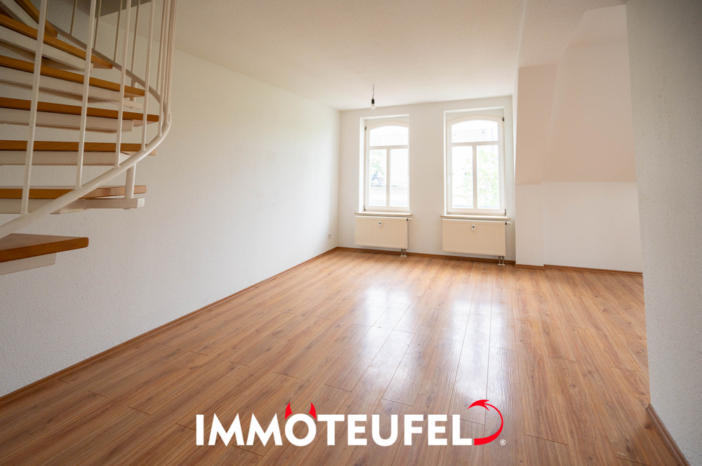 Die zur Vermietung angebotene Maisonette-Wohnung befindet sich im Dachgeschoss eines gepflegten Mehrfamilienhauses in der Fichtestraße 26 in Chemnitz. Auf ca. 73,5 m² Wohnfläche stehen drei Zimmer zur Verfügung. Eine Einbauküche ist bereits vorhanden und in der Miete enthalten. Das Tageslichtbad ist mit einer Badewanne sowie einem Anschluss für die Waschmaschine ausgestattet. Neben dem großzügigen, hellen Wohnzimmer überzeugt die Wohnung mit einem zusätzlichen Spitzboden, der sich ideal als Arbeits- oder Hobbyzimmer eignet. Ein Abstellraum auf halber Treppe, ein separates Kellerabteil sowie der grüne Innenhof mit Wäscheplatz und Sitzgelegenheiten runden das Angebot ab.