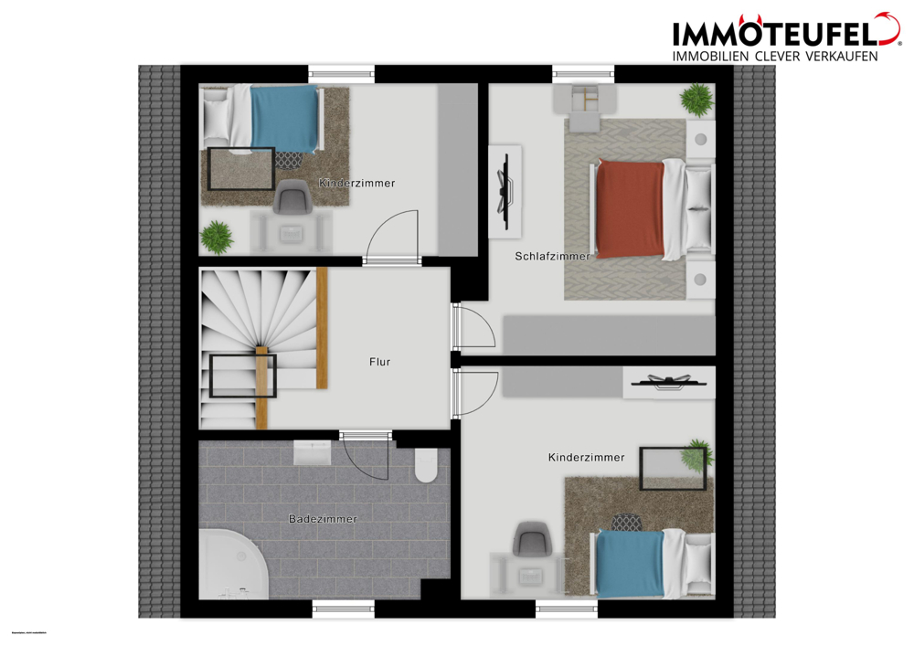Im Dachgeschoss stehen drei gut proportionierte Zimmer zur Verfügung, die sich ideal als Schlaf-, Kinder- oder Arbeitszimmer eignen. Das Schlafzimmer sowie das Kinderzimmer wurden im Jahr 2020 malerisch renoviert und präsentieren sich entsprechend in einem sehr gepflegten und modernen Zustand. Das großzügige Badezimmer mit Badewanne und WC bietet viel Platz und ist – wie das gesamte Dachgeschoss – mit Dachflächenfenstern ausgestattet, die über elektrische Rollläden verfügen. Zudem verfügt das Bad über eine angenehme Fußbodenheizung, die für zusätzlichen Komfort sorgt. Alle übrigen Fenster des Hauses sind mit Außenjalousien versehen und gewährleisten damit optimalen Sonnen- und Sichtschutz.