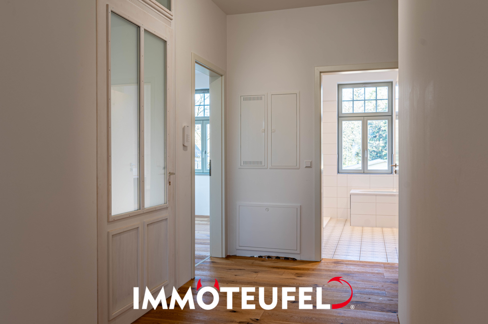 Diese großzügige 4-Raum-Wohnung im ersten Obergeschoss eines aufwändig sanierten Mehrfamilienhauses überzeugt mit ihrem einzigartigen Wohncharme. Das denkmalgeschützte Gebäude, eine ehemalige Fabrikantenvilla, wurde mit viel Liebe zum Detail restauriert und verbindet auf harmonische Weise historische Eleganz mit modernem Wohnkomfort. Die sorgfältige Sanierung hat das ursprüngliche Flair des Gebäudes bewahrt, während gleichzeitig alle modernen Ansprüche an Komfort und Energieeffizienz erfüllt werden.